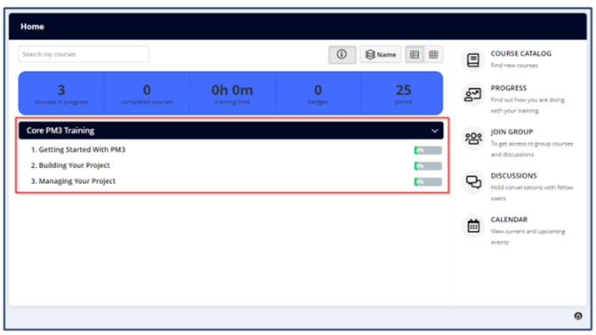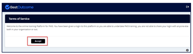 Ensuring you are logged into PM3- Once you reach the first ‘Hands on with PM3’ module in PM3Learn, log in to your PM3 system.
