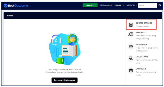 Starting the courses- Click ‘Home’ on the top left of the screen and you will see the courses. Click on the first course to begin