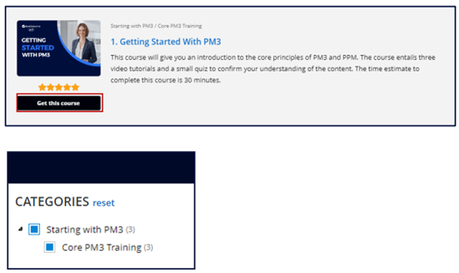 - Project Note: you can filter by Category on the top right-hand side and choose ‘Core PM3 Training’