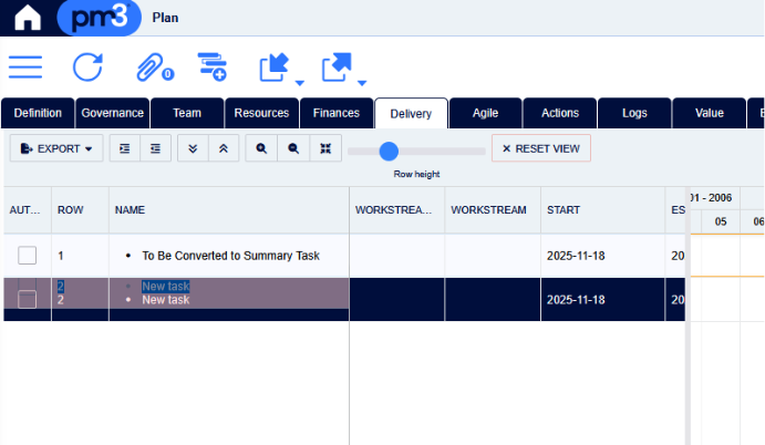 - Select the Gantt Chart page under the Delivery Plan tab.