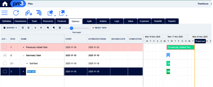 - To fill the Resources box, you can either double click on the Assigned Resources cell in the table on the left hand pane, which will show a dropdown of checkboxes where you can select them. Alternatively, you can right click on a row and select Edit, then go to the Resources tab in the popup and you can use the + symbol to add resources, or the bin icon to remove them. In the Task Edit popup, the "Delete" button on the bottom right will delete the entire row and NOT the selected resource/dependency/etc.