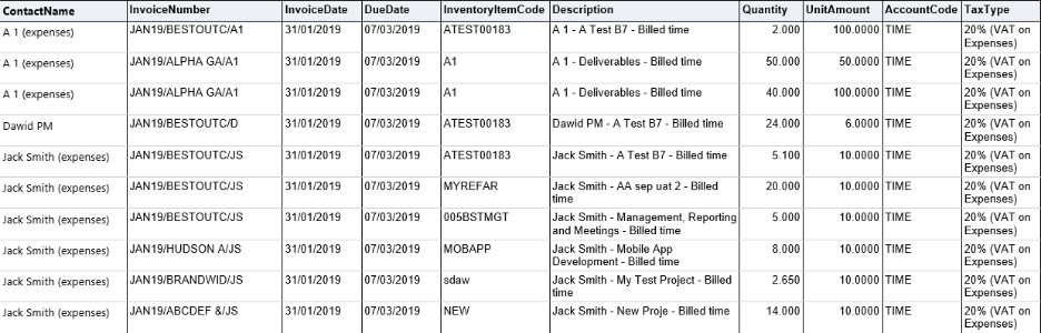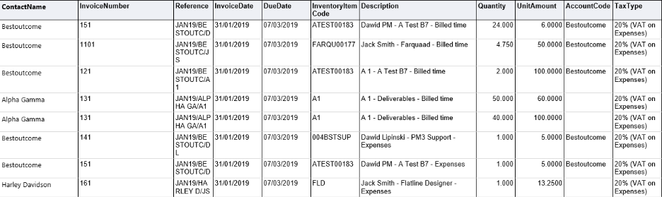 - Xero Export – Sales – Time + Expenses: billed time and expenses for which you invoice which your Customers must pay.