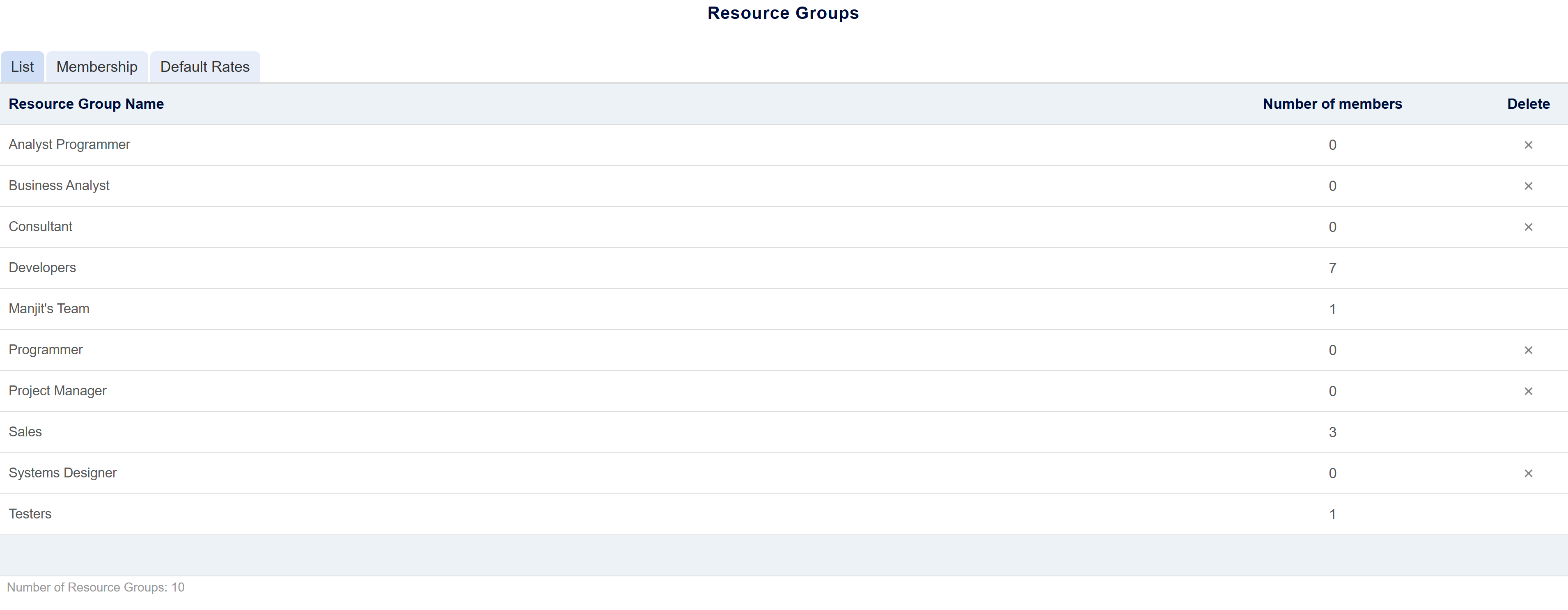 The Resource Groups page contains a list of all the Resource Groups in PM3time, and which persons have been assigned to them. To add a new Resource group, click the 'Add Resource Group' icon in the tool ribbon, and type the name of the new resource group in the newly added item to the list.