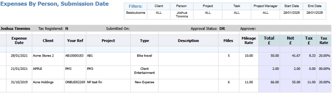 Doing so will take you to the Reports page and automatically produce a printable Expenses report: